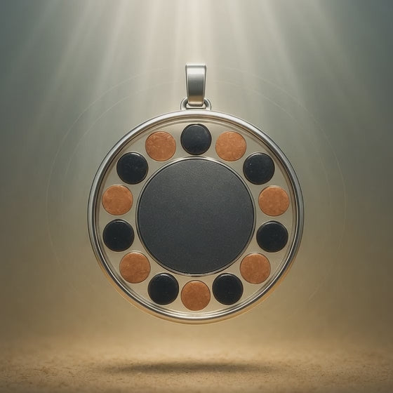 El medallón es una pieza artesanal hecha a mano en España, diseñada para uso diario, discreta por fuera y poderosa por dentro.